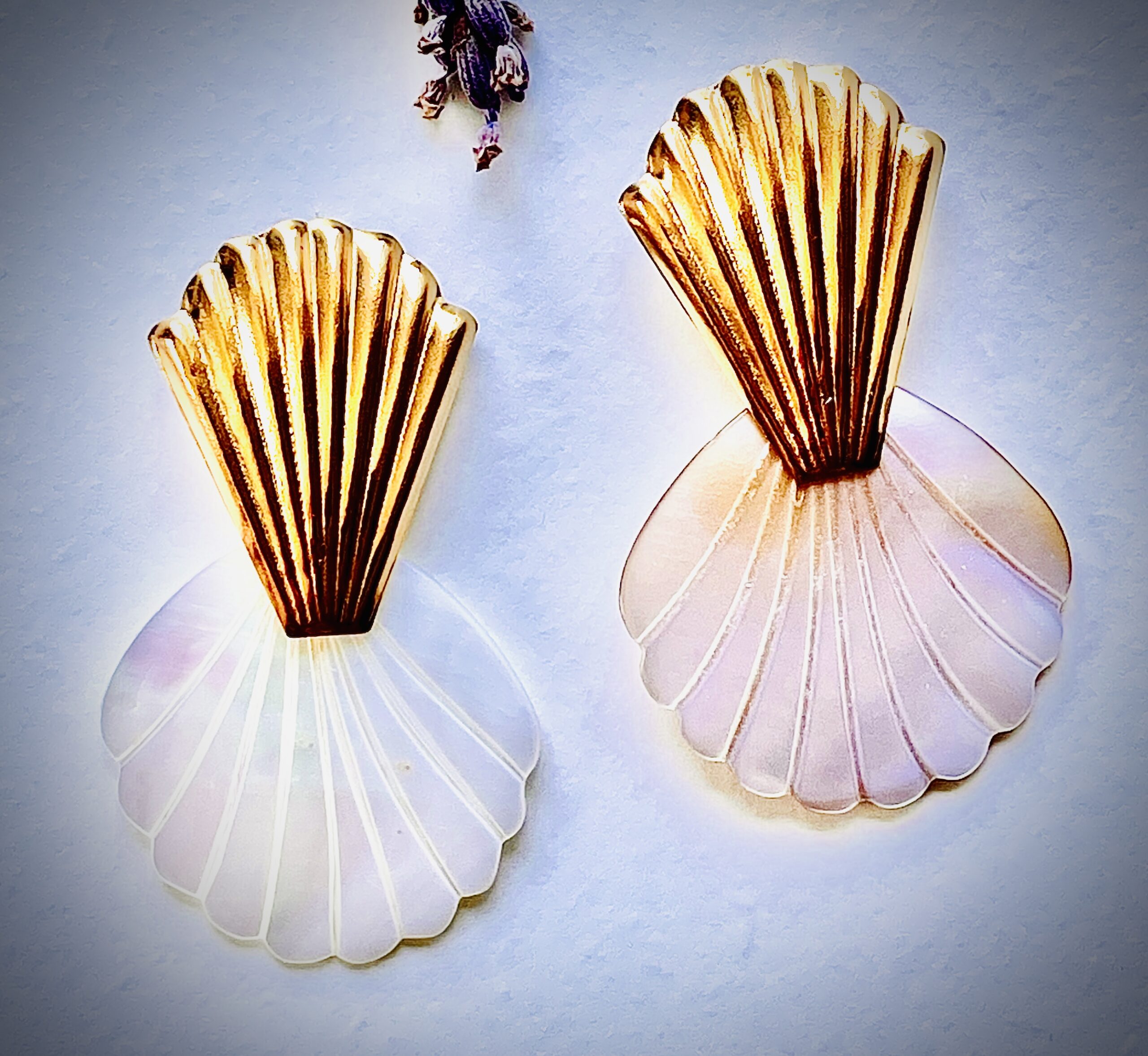 Matière : Acier doré et nacre irisée sculptée en éventail