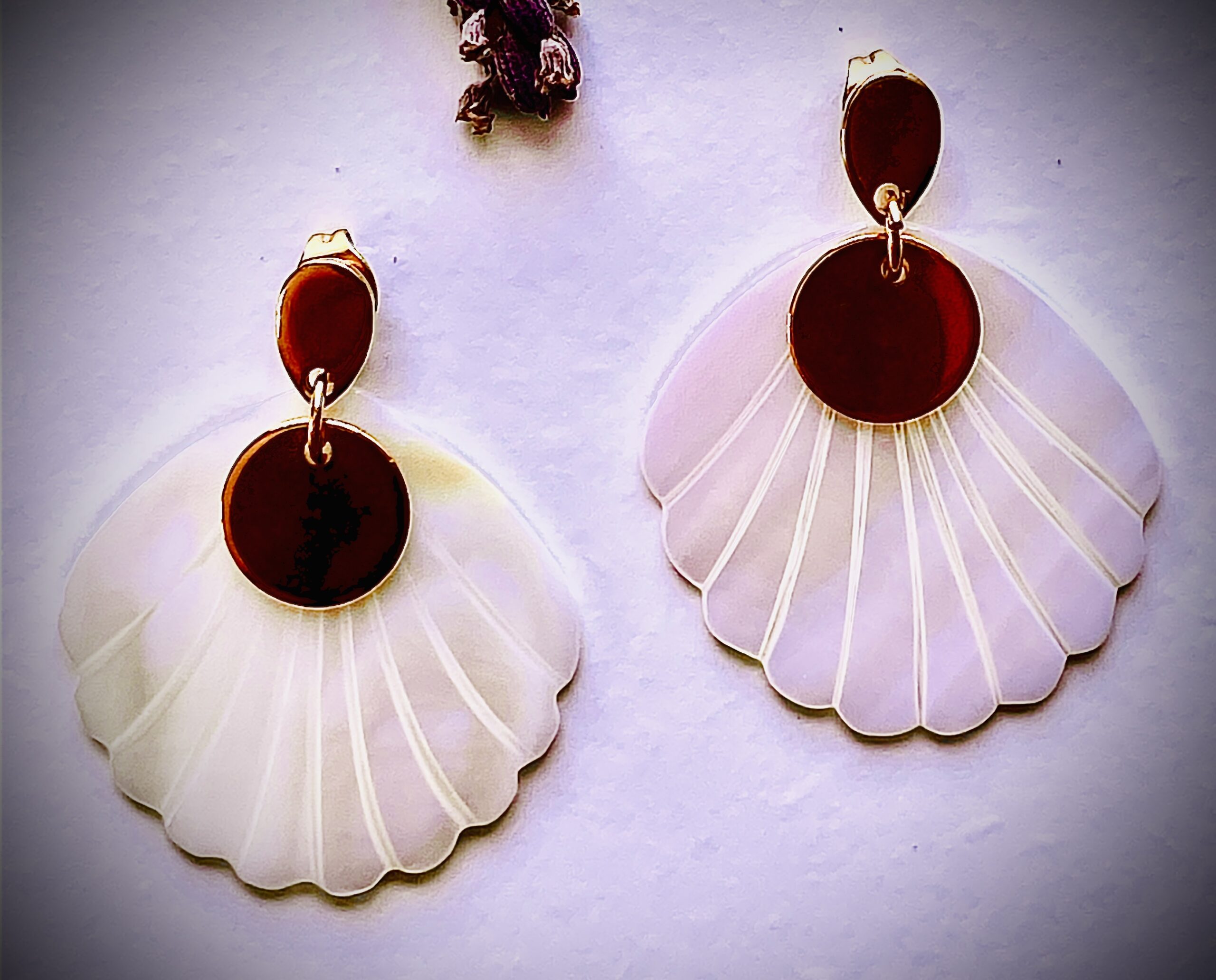 Matière : Acier doré et nacre blanche sculptée en coquille