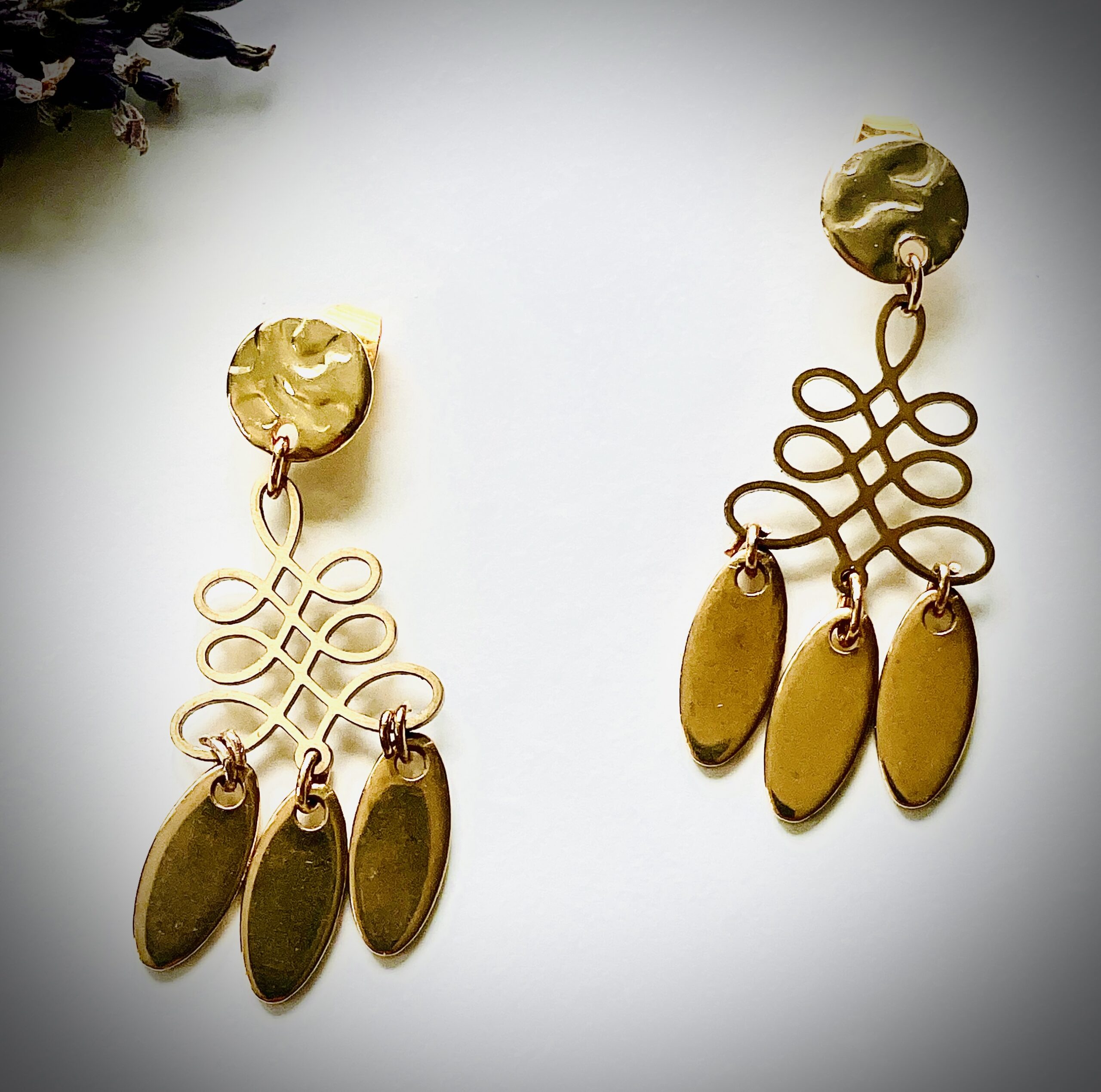 Fines et élégantes, les boucles Angeline associent une monture dorée ajourée au design raffiné à trois pampilles ovales qui dansent à chaque mouvement. Leur silhouette gracieuse et lumineuse reflète une féminité délicate et romantique.