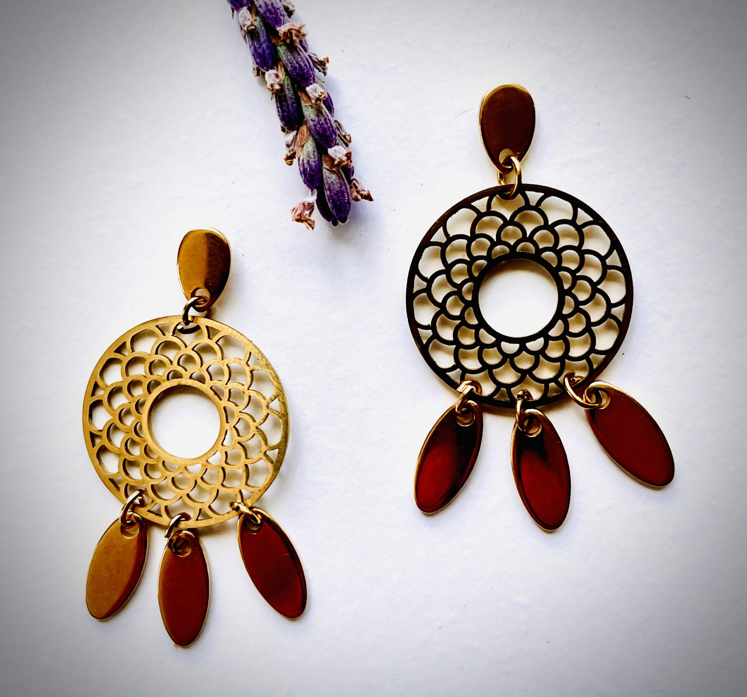 Matière : Acier doré ajouré et pampilles ovales dorées