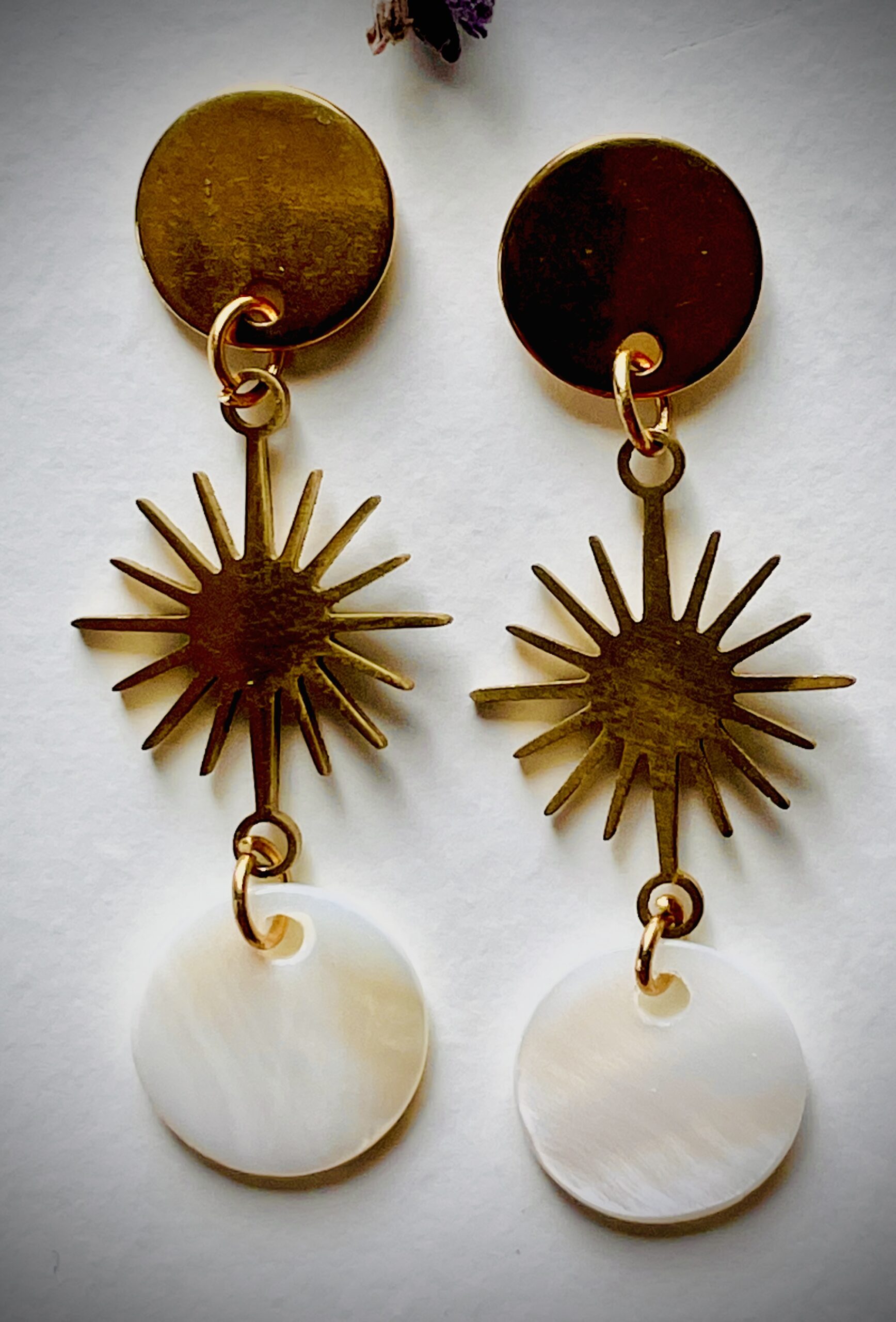 Le motif solaire évoque la vitalité et la confiance, tandis que la nacre, pure et délicate, rappelle la sérénité et la féminité.