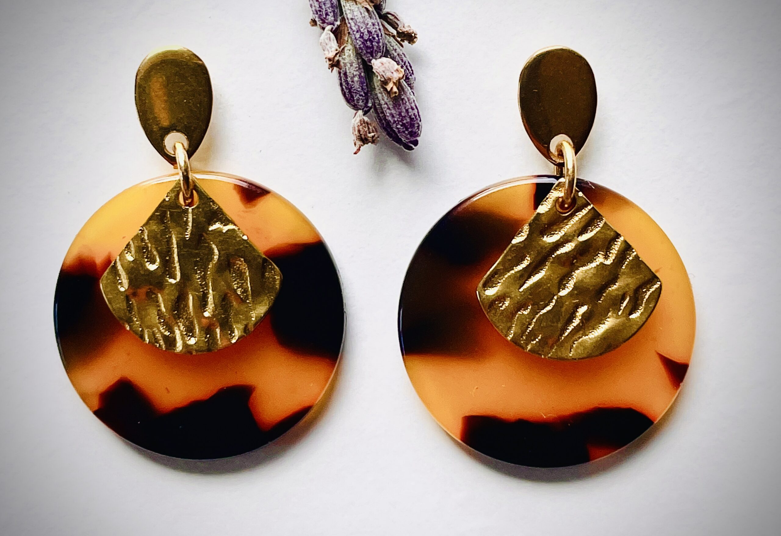 Le modèle Castille joue sur les contrastes : de larges pastilles façon écaille aux tons chauds, rehaussées par une pièce dorée martelée. Un bijou à la fois audacieux et raffiné, symbole d’imagination et de dynamisme.