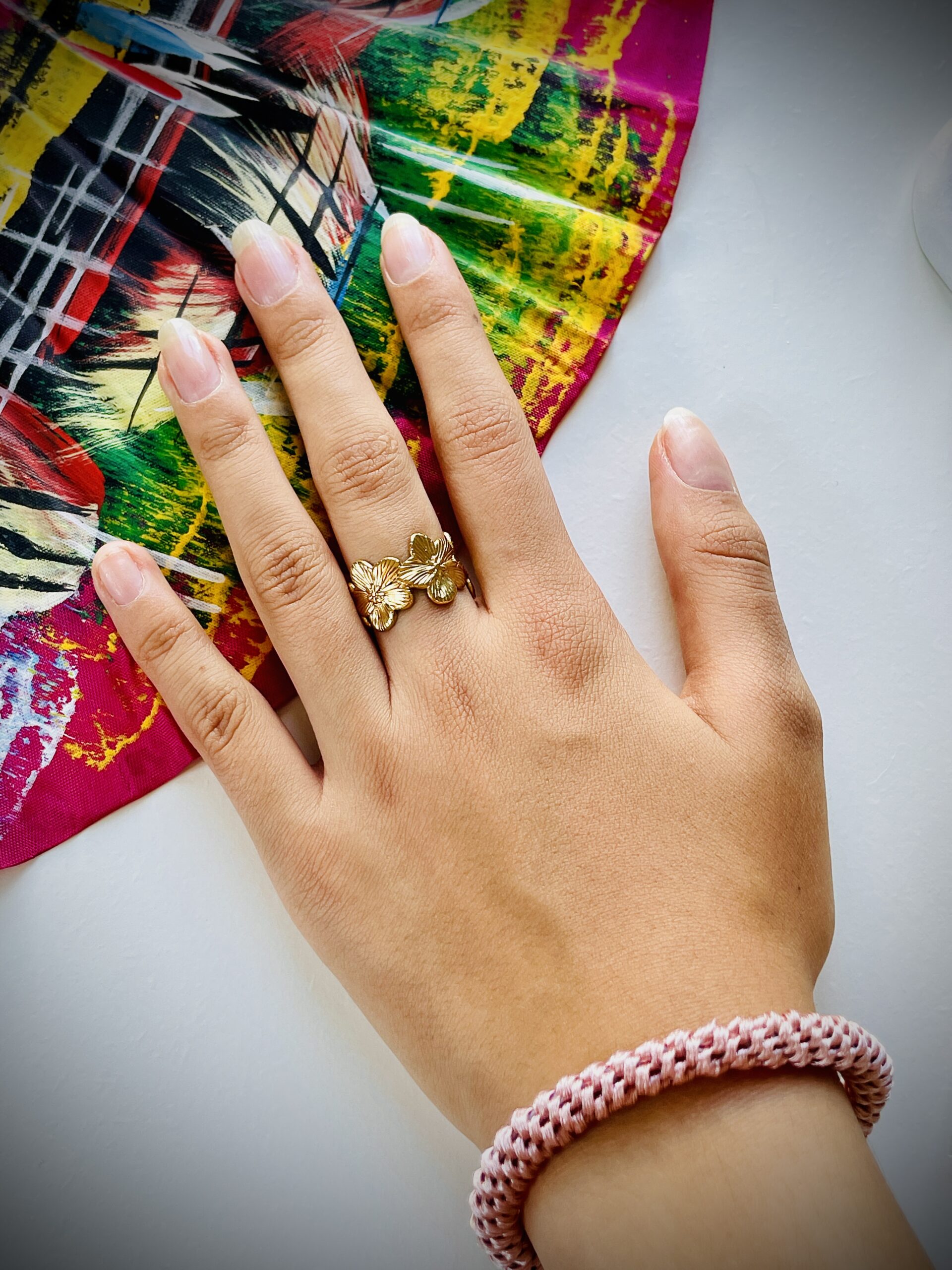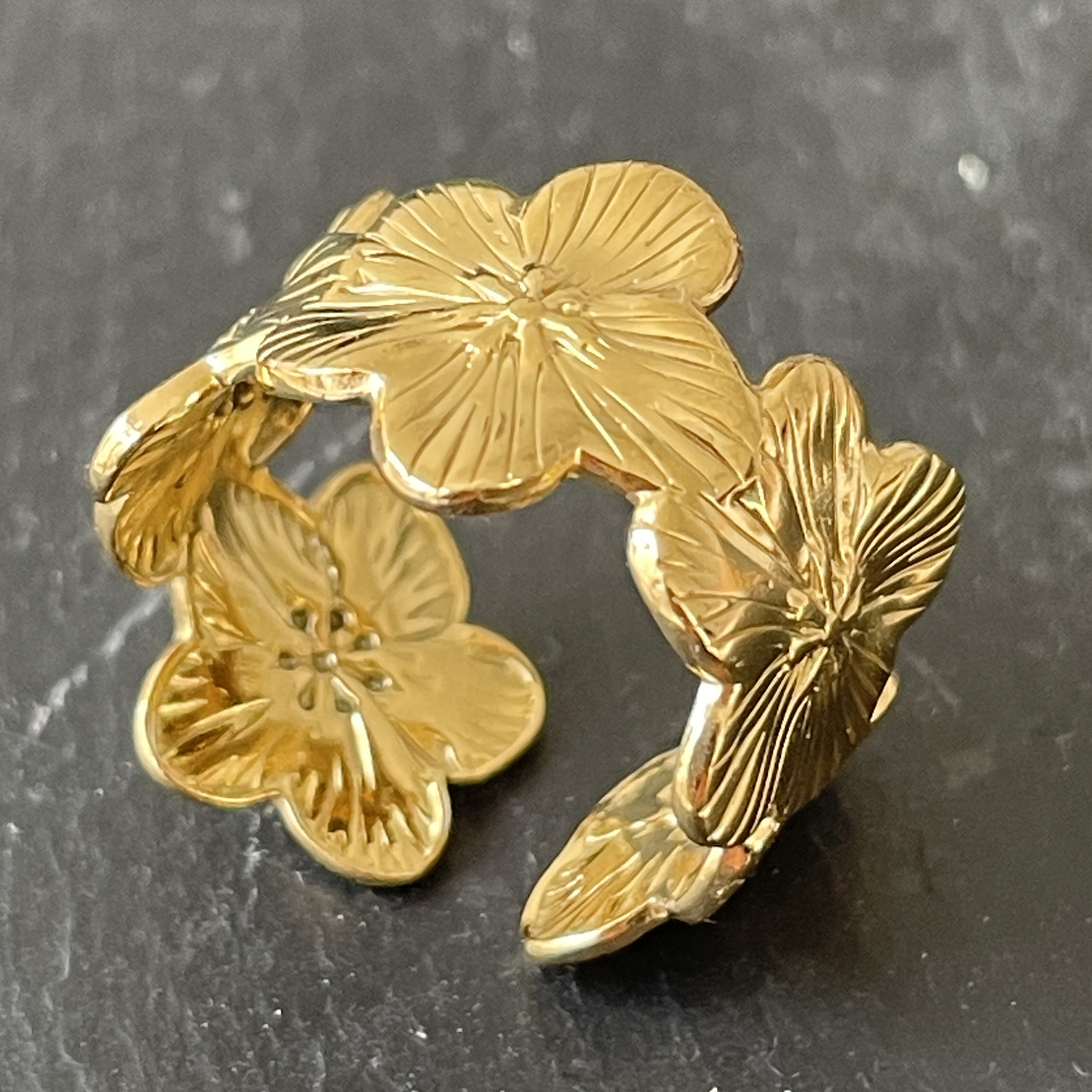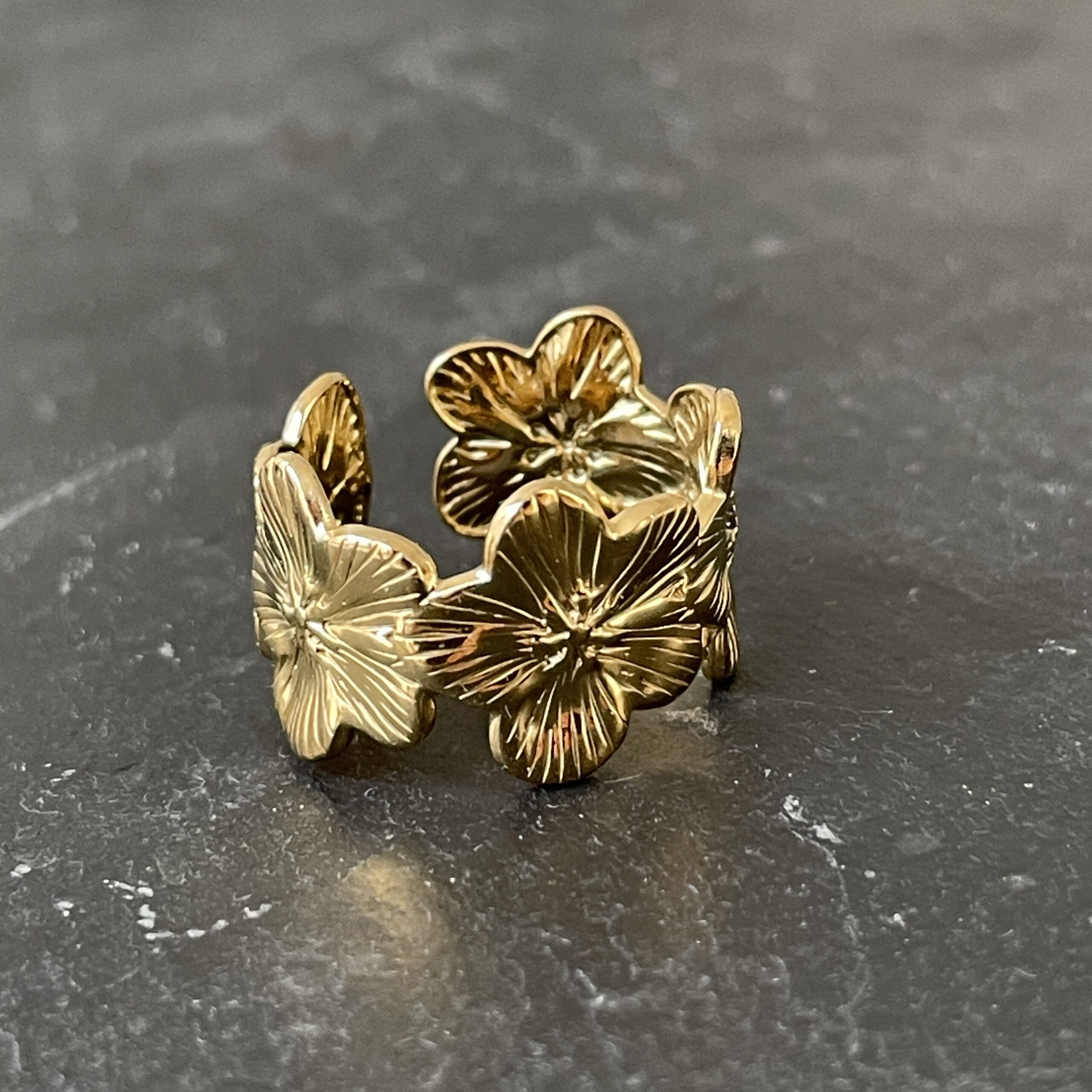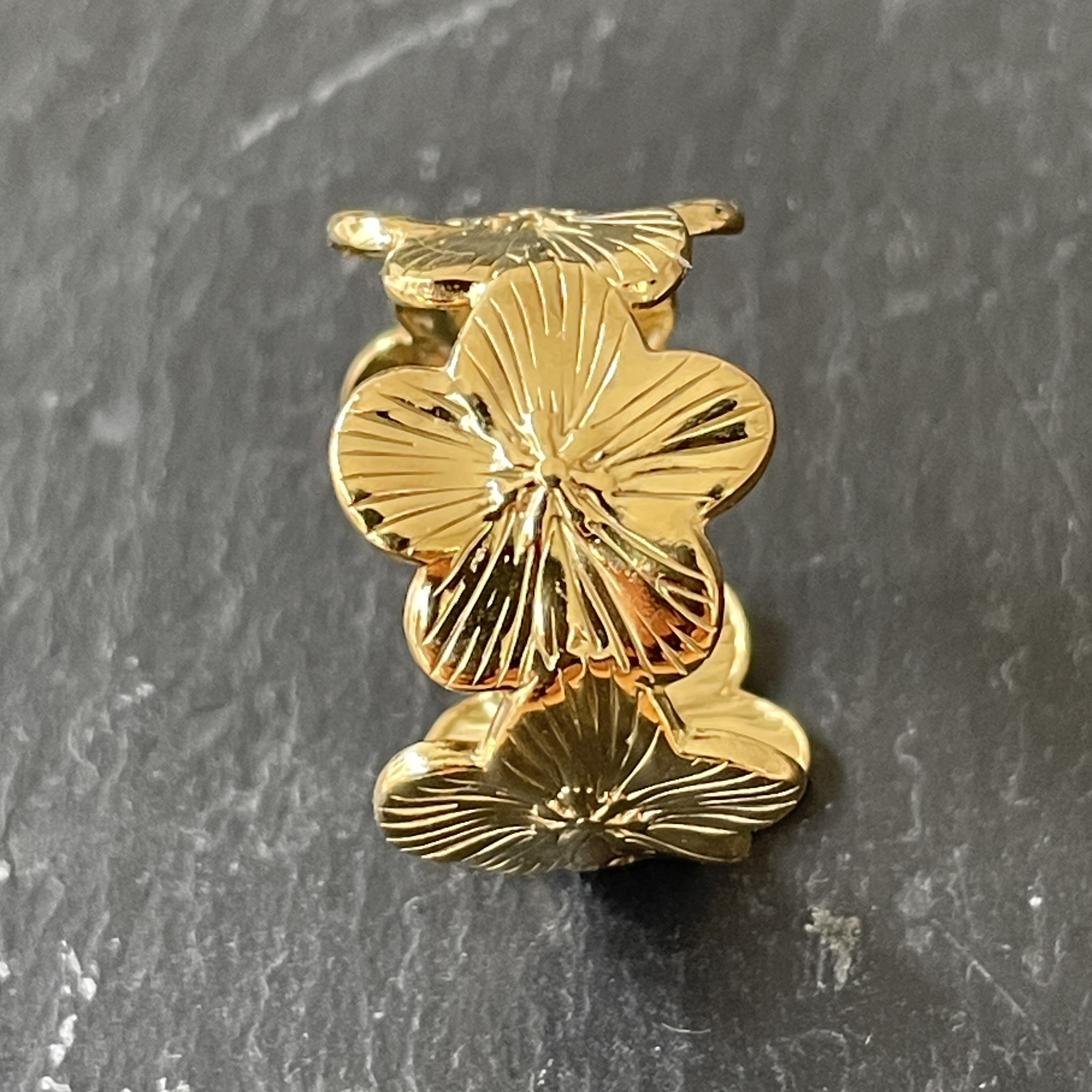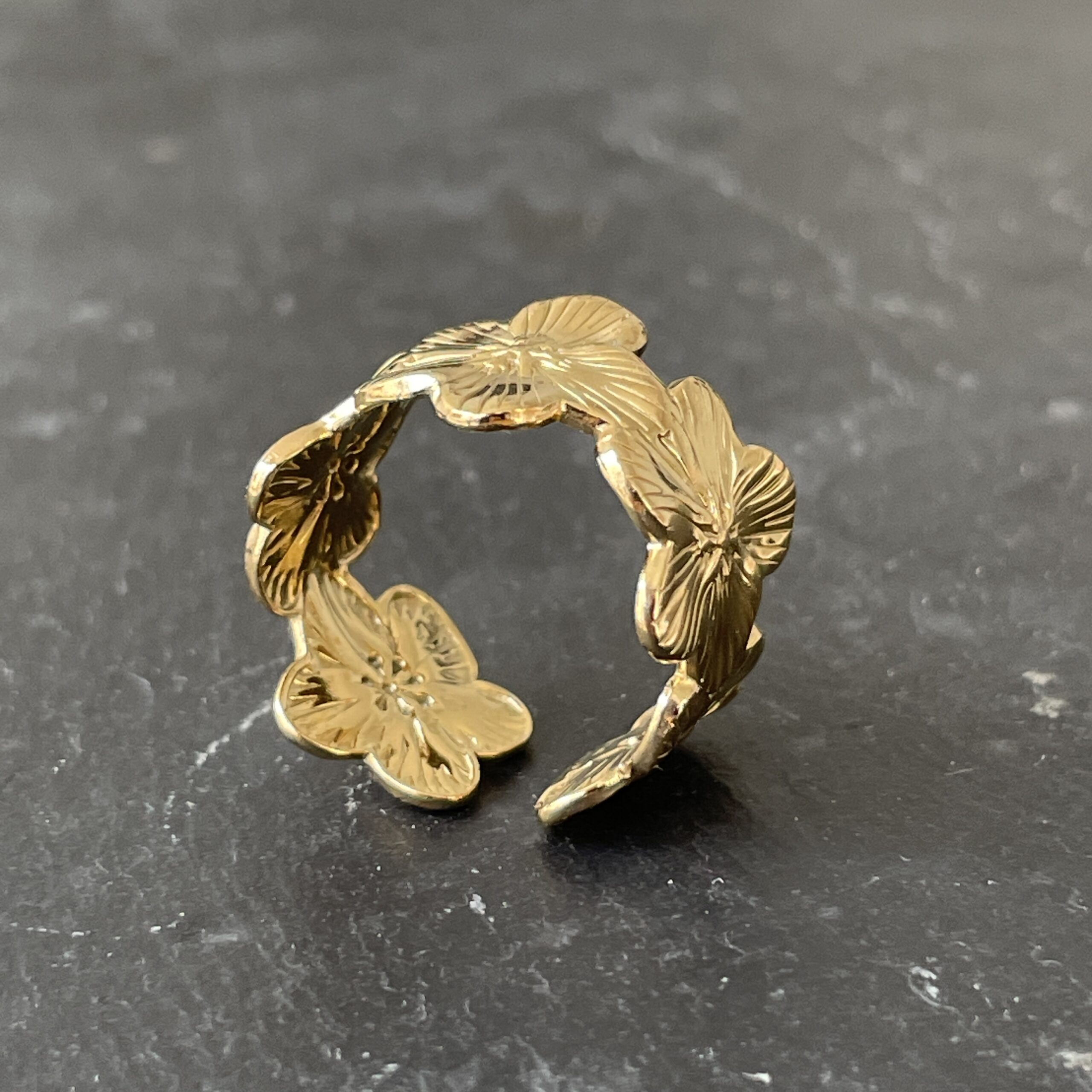 Féminine et lumineuse, la bague Christie séduit par la délicatesse de son motif floral doré.