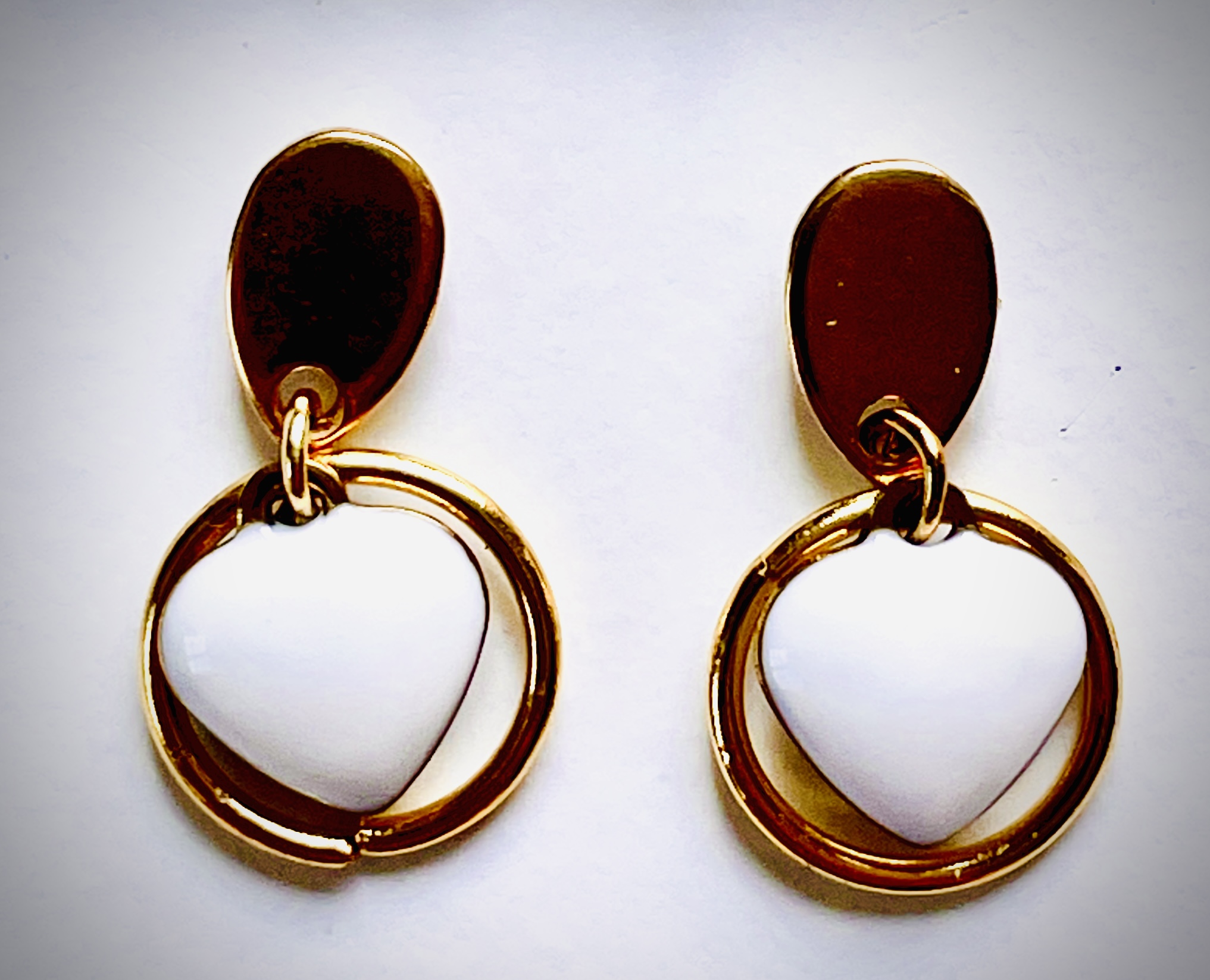 Le modèle Clémentine charme par son cœur immaculé suspendu dans un anneau doré, soutenu par une puce dorée élégante. Ces boucles reflètent toute la rigueur et le dynamisme propres à ce prénom, entre force et vivacité.