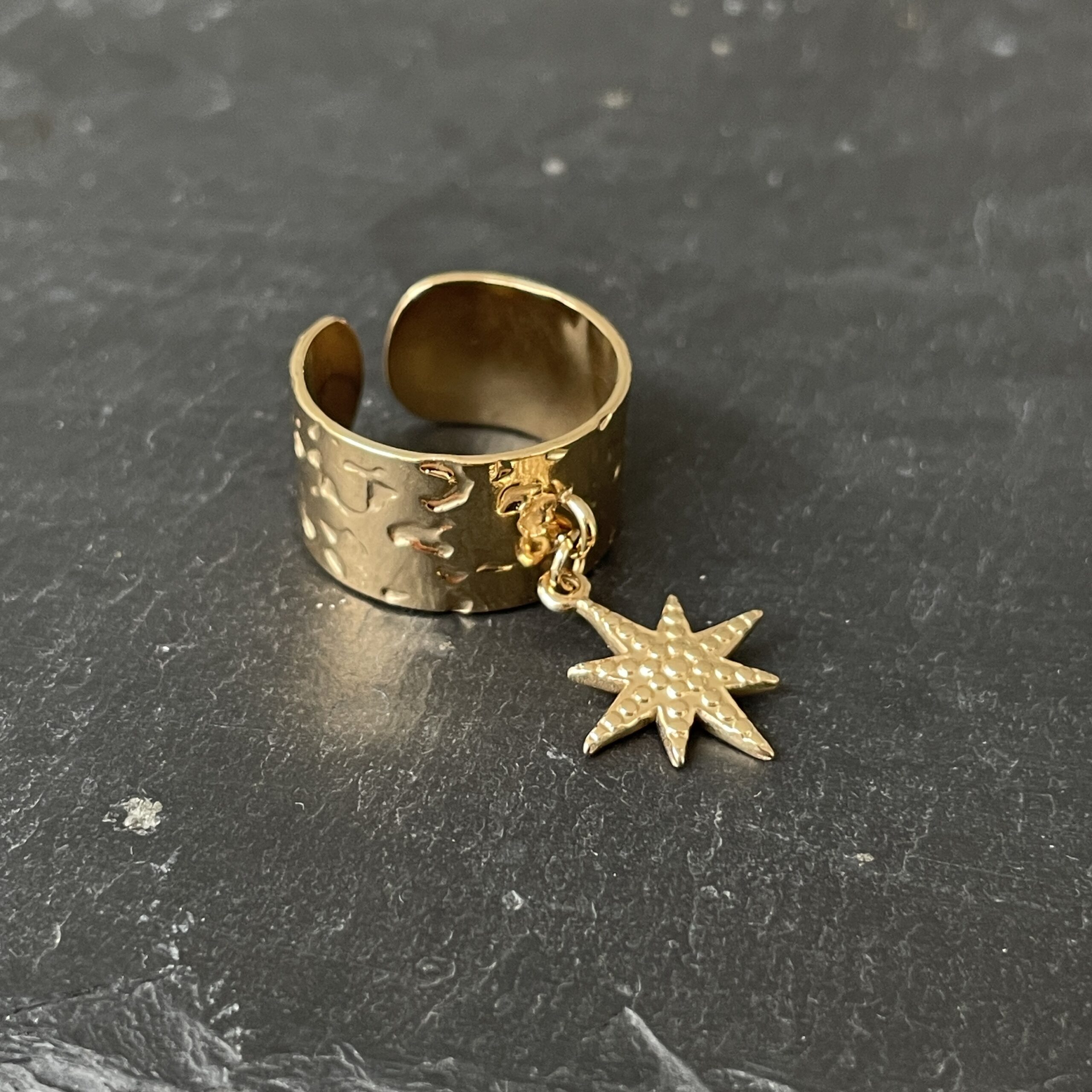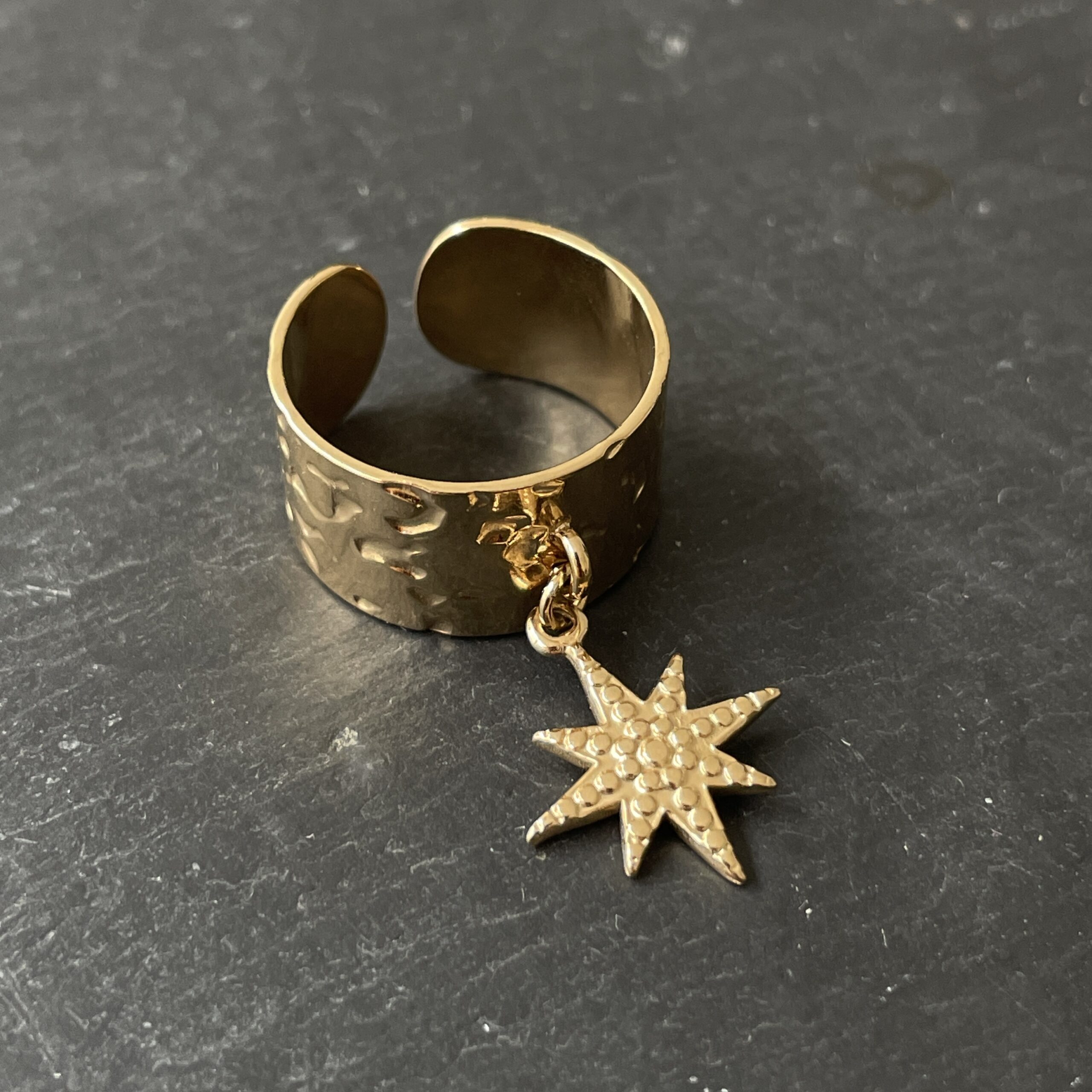 En suspension, une étoile dorée à huit branches apporte une touche céleste et symbolique, évoquant l’énergie, la protection et la lumière intérieure.