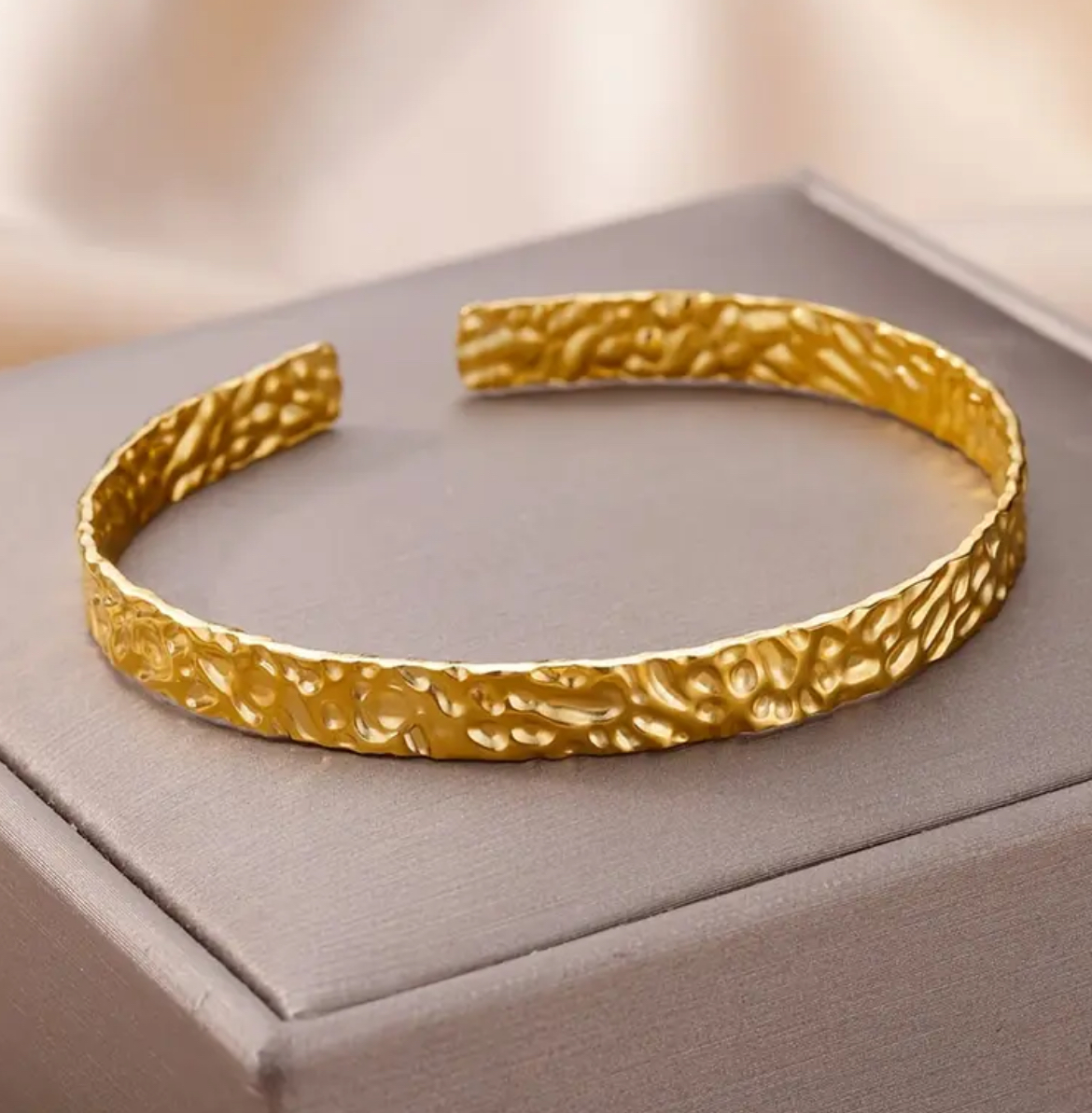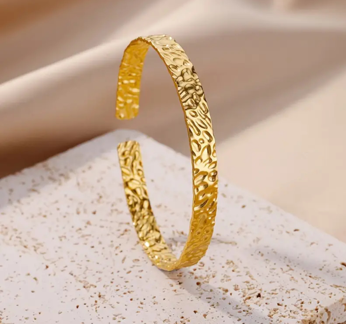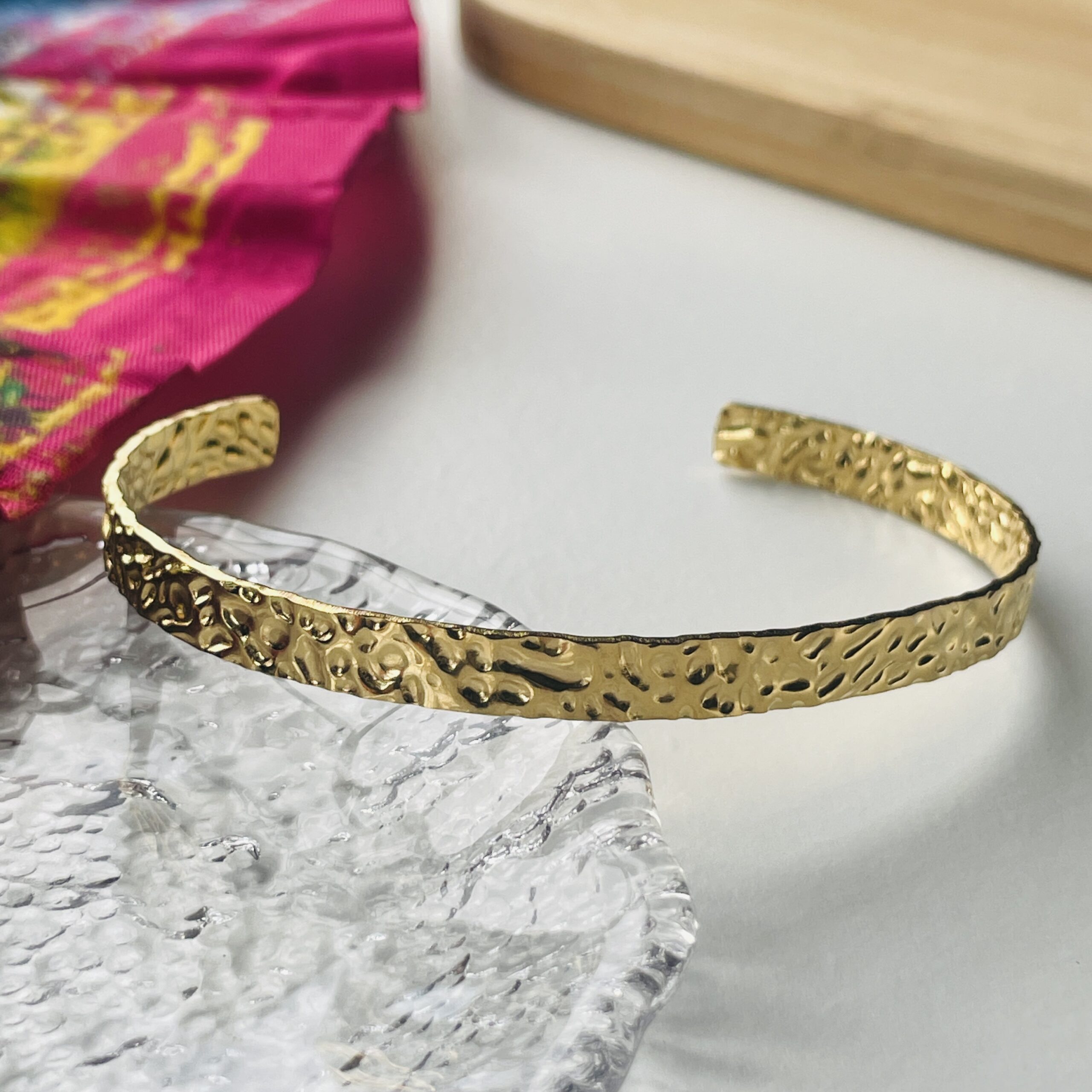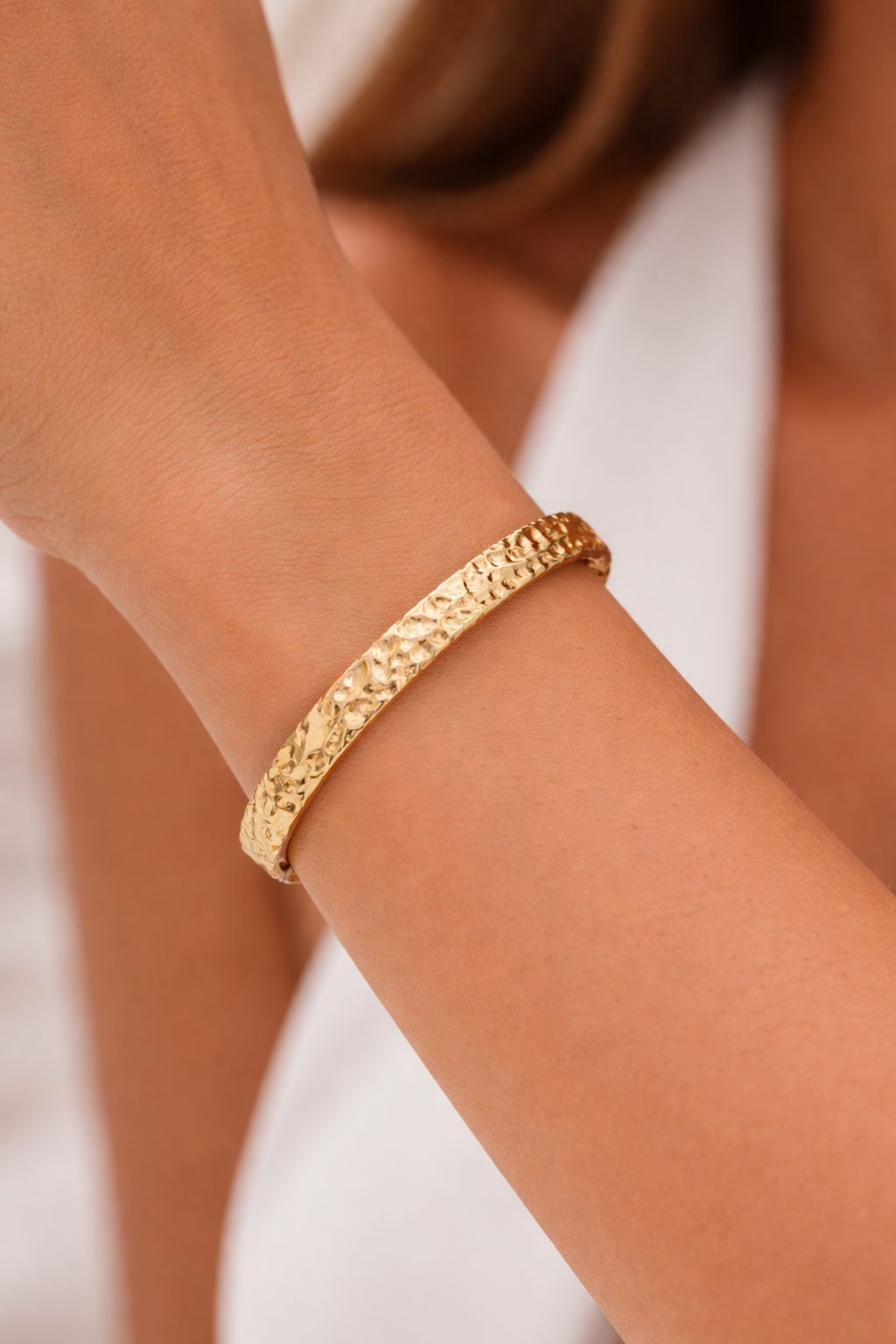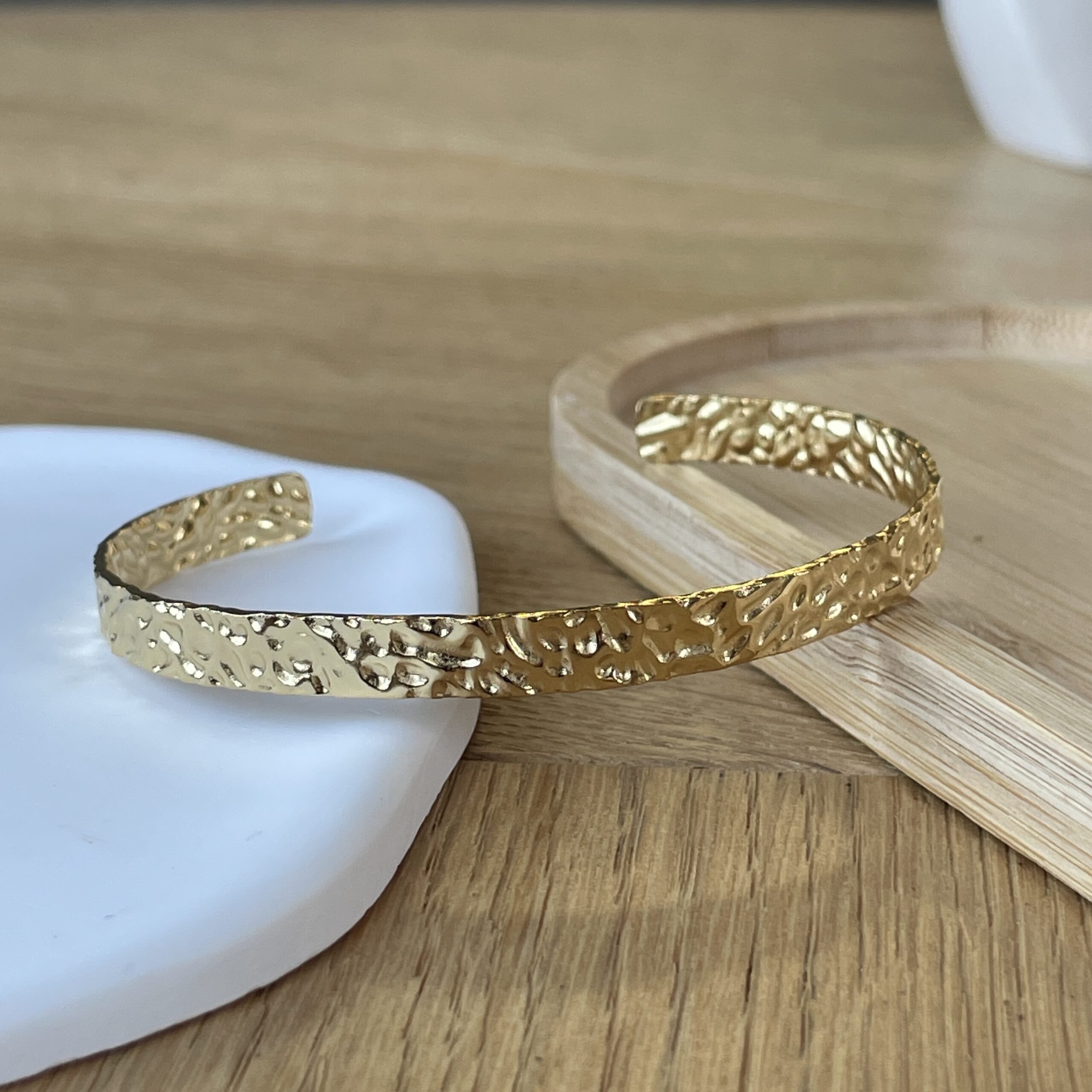 Élégant et intemporel, le bracelet Faustine séduit par son design épuré et sa texture délicatement martelée.