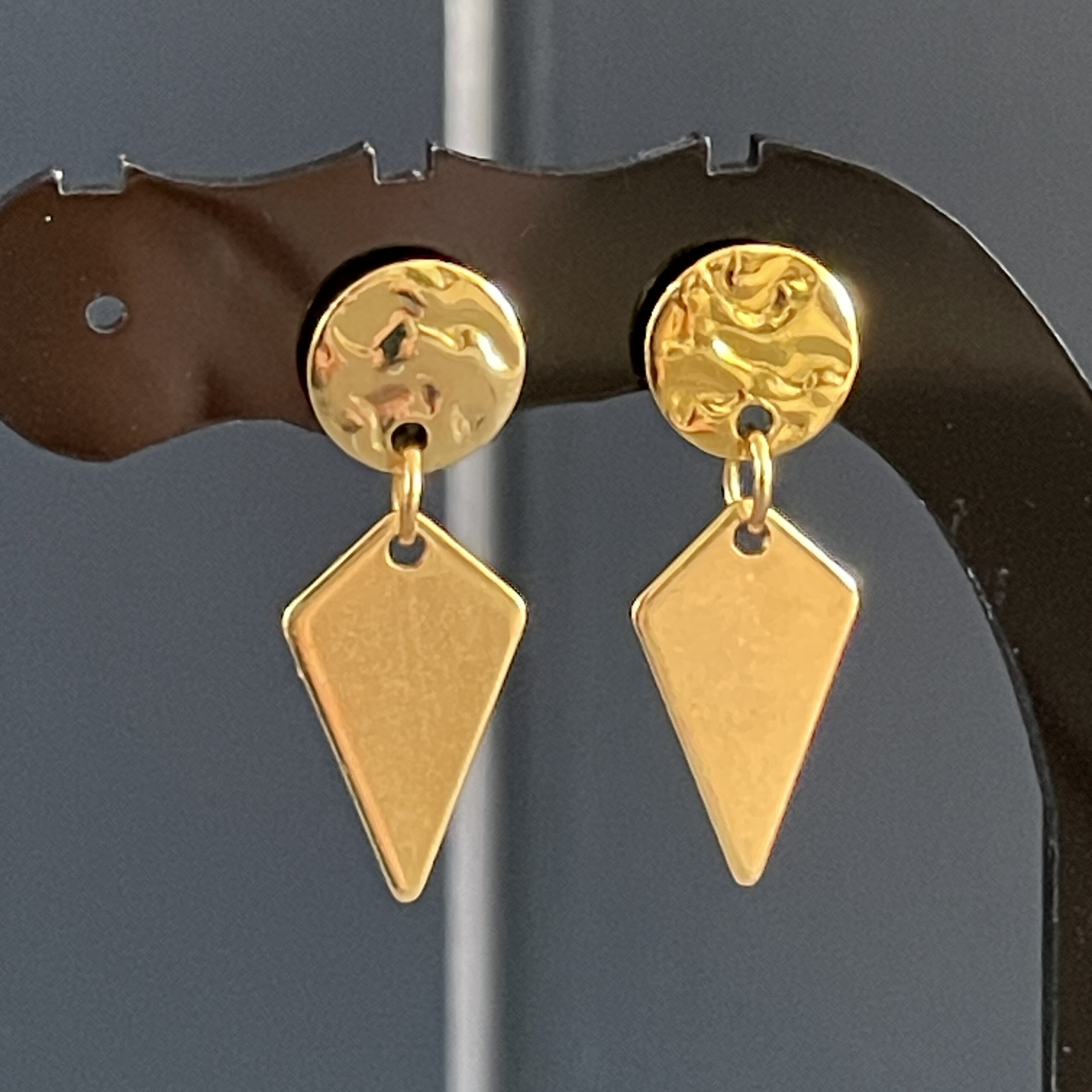 🌼Les boucles d’oreilles Juliette incarnent une élégance moderne aux lignes épurées. Leur attache ronde martelée apporte du relief et capte la lumière, tandis que le pendentif géométrique en forme de pointe crée une silhouette élancée et graphique.