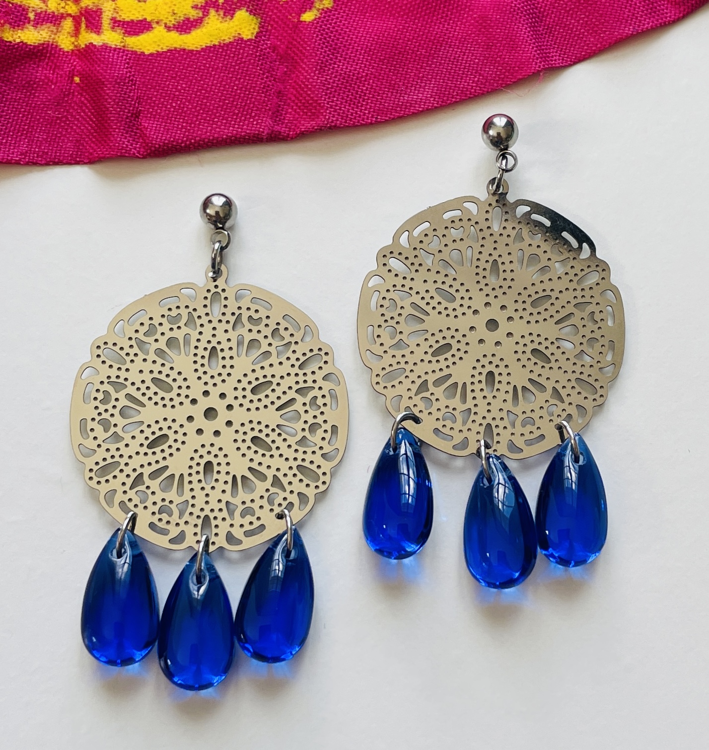 Un bijou éclatant qui célèbre la beauté de la mer avec ses pampilles bleu profond rappelant les reflets de l’océan.