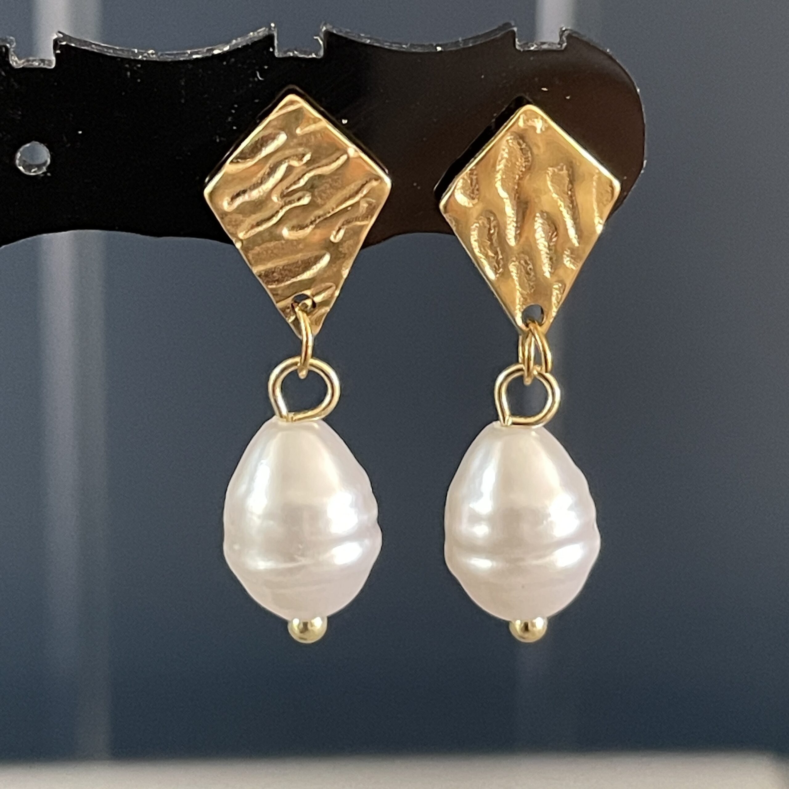 🌼Les boucles d’oreilles Maxine allient caractère et élégance avec une touche précieuse. Leur attache géométrique dorée, finement martelée,