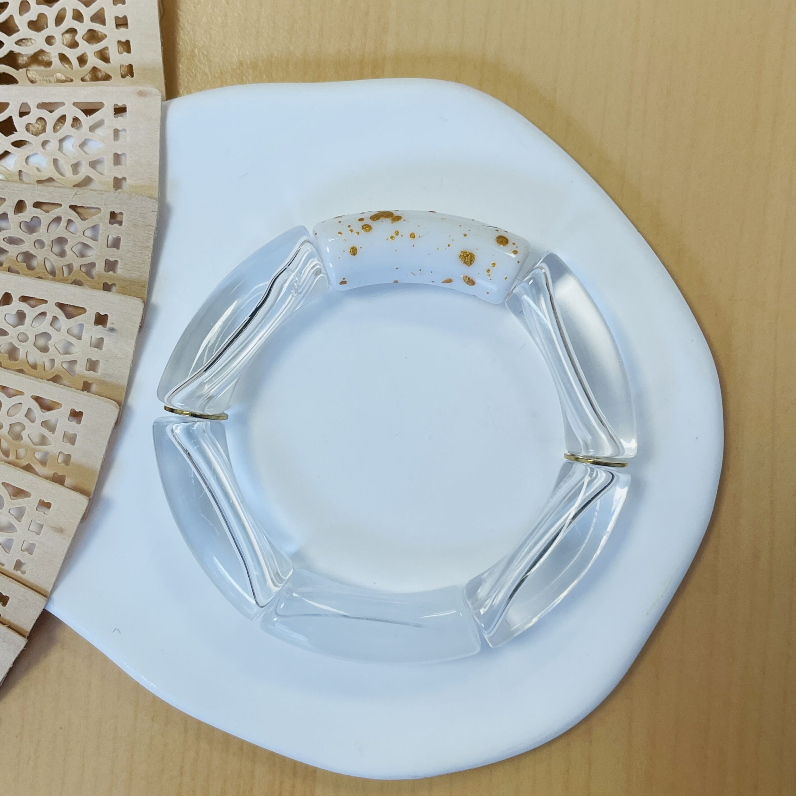 Le bracelet Tancheon célèbre l’équilibre subtil entre mouvement et sérénité. La transparence évoque la pureté et la circulation de l’eau, tandis que les nuances laiteuses et les accents dorés apportent une douceur raffinée. Un bijou discret et lumineux, pensé pour celles qui aiment les lignes claires, les pièces aériennes et l’élégance naturelle.